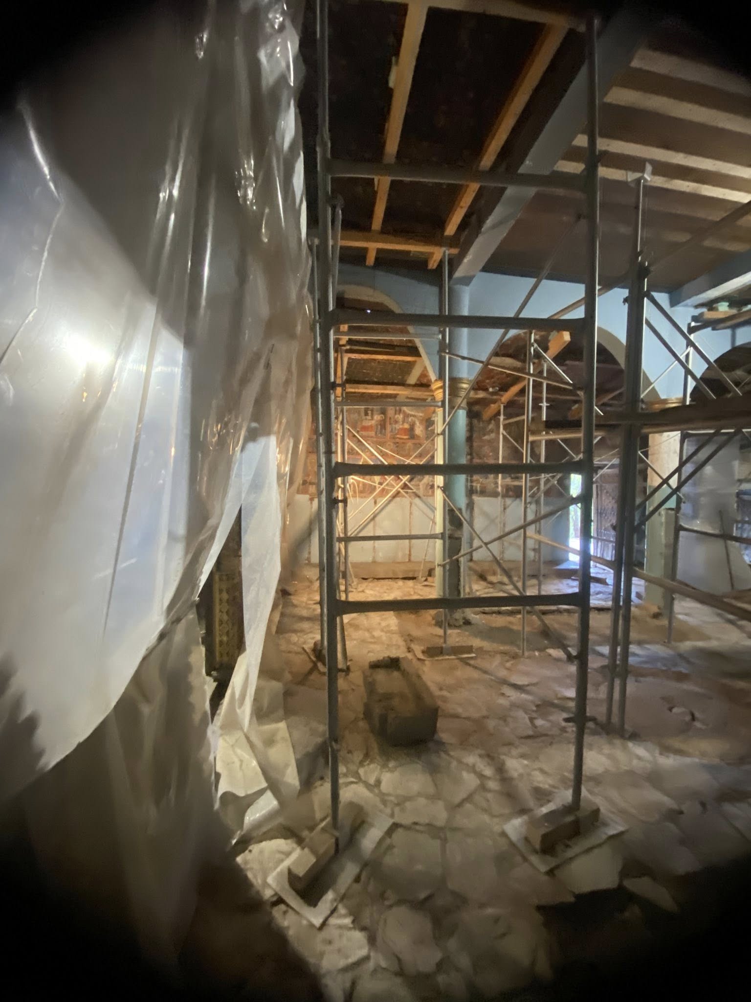 στάδιο με την συντήρηση του εσωτερικού διακόσμου του ναού, τις